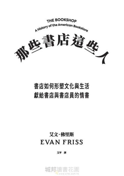 「細膩而深邃⋯⋯艾文‧佛里斯是我們穿梭書店歷史之旅的理想嚮導,他帶來豐富的知識與軼事,並以苦樂參半的筆觸提醒我們:書店何其重要,對我們的文化與社群又是何其必要,我們必須竭盡所能守護它們。」