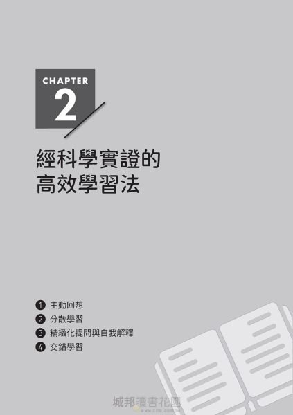 第2章則會詳述那些經科學驗證效率較高的學習方法,並引用一部分代表性的研究論文作為理論基礎,同時具體介紹我在學習時是如何實際運用這些方法。