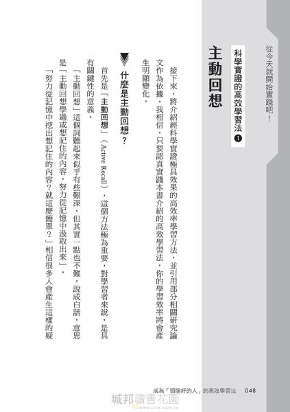☉ 主動回想:增加大腦的「有益困難」度,並搭配「輸出」技巧。