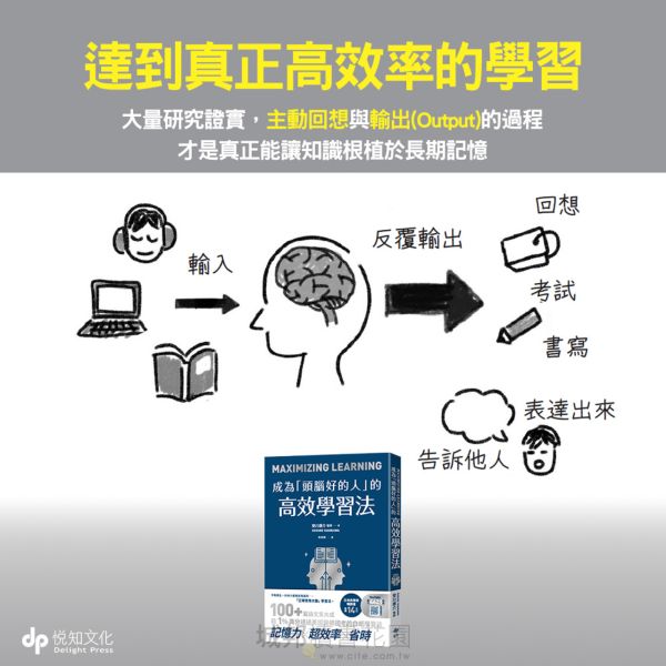 對大腦而言,若只是純粹的Input(輸入),對記憶毫無幫助;想要提升學習成效,必須善用書中的5種Output(輸出)技巧:
