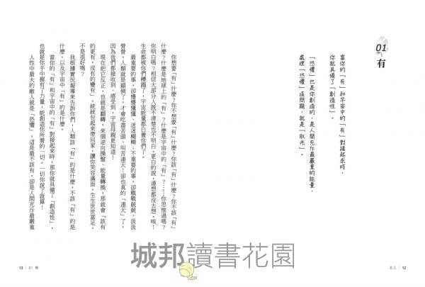 生活,要丟一些,也要加一些。丟什麼? 加什麼? 丟──自我厭惡的情緒。加──自我正確的價值觀。 心玲的三本書,告訴了大家如何丟如何加。為自己的人生