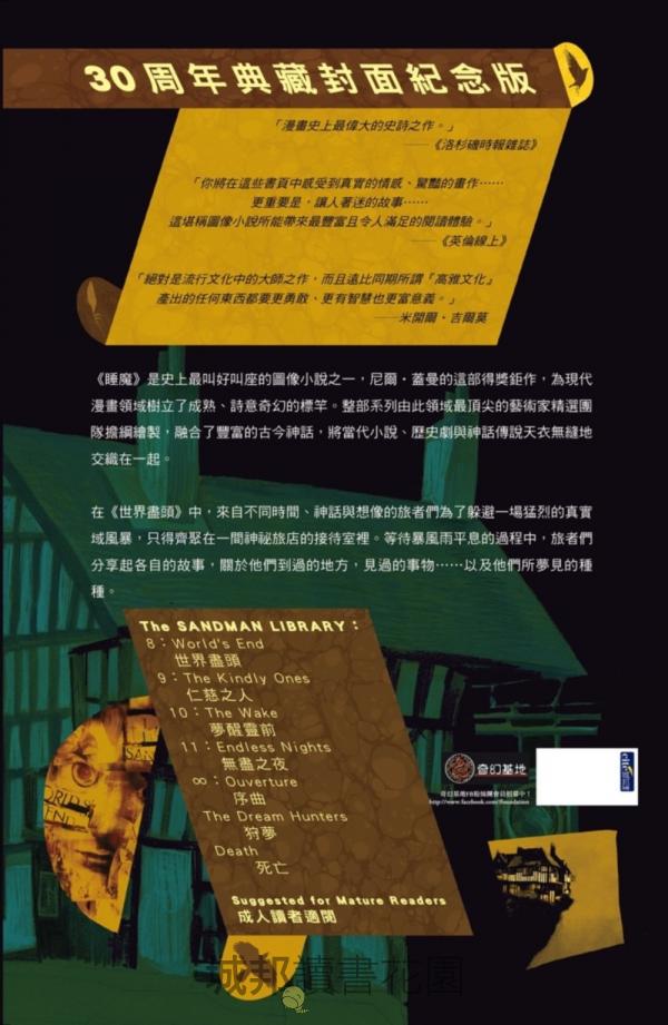 台灣版本內外印製使用高級美術紙,白底透光,為墨重的睡魔更凸顯亮麗色彩。
