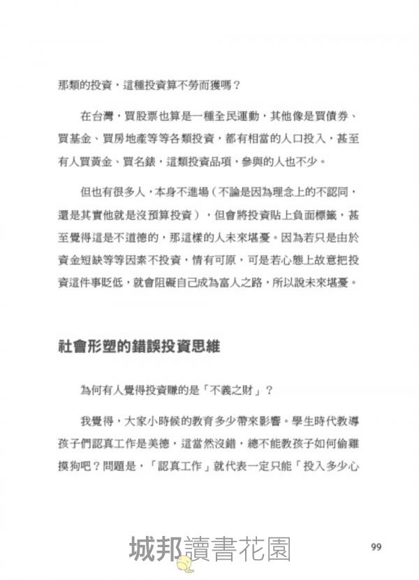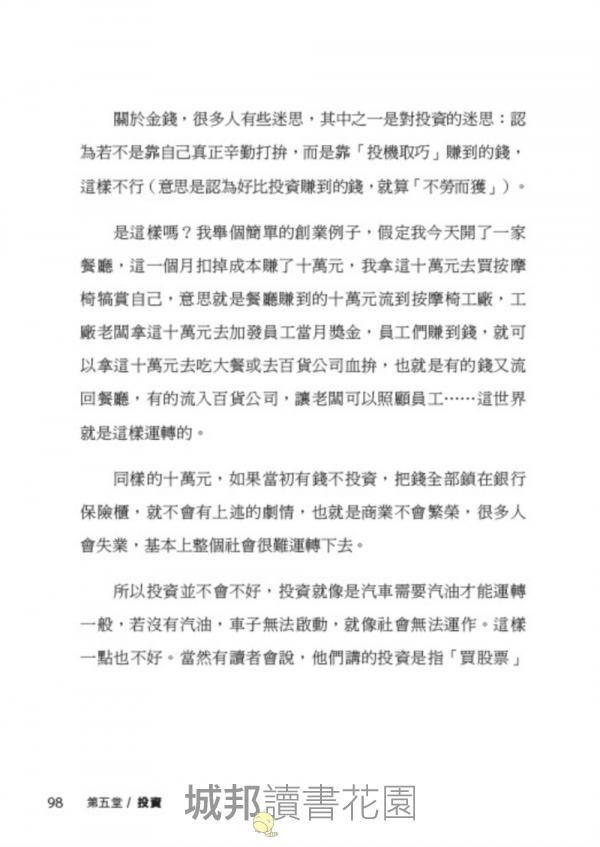 本書不是教你投資理財、它談的是「如何駕馭金錢財富」的思維。因為沒有正確的思維,就算給你一艘核子潛艇,你也會駛進暗礁;而擁有了富人思維,即使只是乘小木船,也不至於迷航。