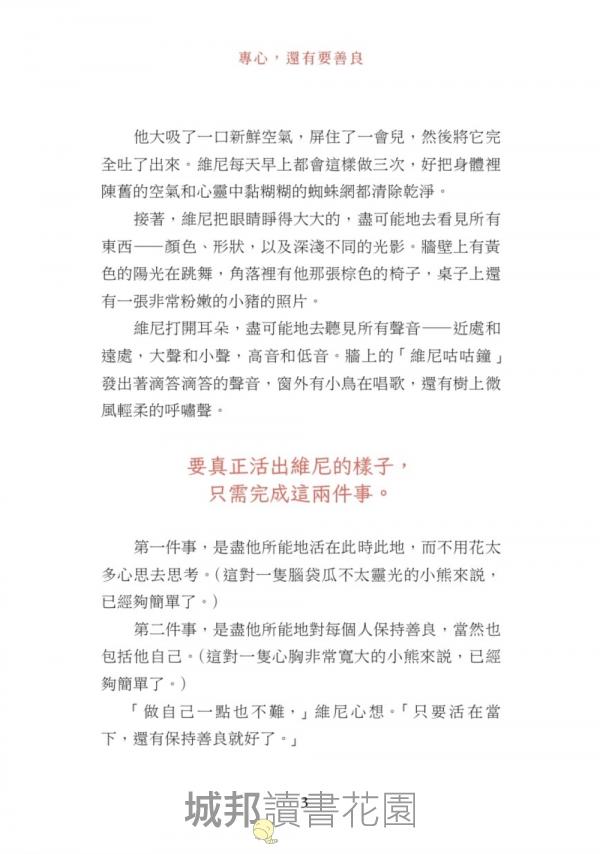 ☆ 小熊維尼的正念啟發:以維尼的溫柔語言,引導讀者放慢腳步、專注當下,用最單純的方式面對生活。