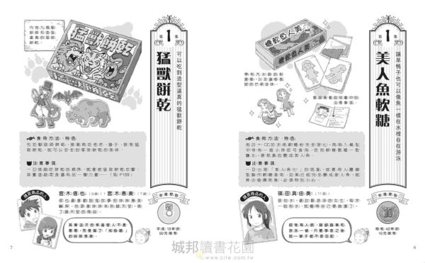 書中收錄小說第一集到第十四集登場過的所有零食、玩具,就連倒霉堂的商品介紹也一應俱全,想了解這些商品的實際功效和注意事項,打開圖鑑,裡頭只有你不知道的機密,絕對不會有找不到的資料!