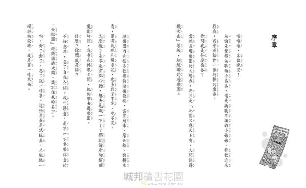 如果你喜歡神奇柑仔店,那麼你一定也會喜歡這座夜晚的「恐怖遊樂園」! 不過,就算你想要去,也不是那麼容易,首先你要得到怪童的邀請。這個戴著魔術師帽、身穿黑斗篷、鬍子和頭髮都紅得像草莓的男子,在大街小巷中尋找迷茫的人、生氣的人、陰沉的人、不順心的人,只要被他遇上,就可以到天獄園免費挑選一項遊樂設施或是購買一樣禮品,聽起來是不是很棒呢?只不過進去之後.......就會有意想不到的事情發生喔!你的人生可能也會因此而改變喔!我還是不說為妙,有些事還是不要透露太多,免得......不過你可以翻翻這本書,看看那些走進天獄園的人們到底發生了什麼事吧!