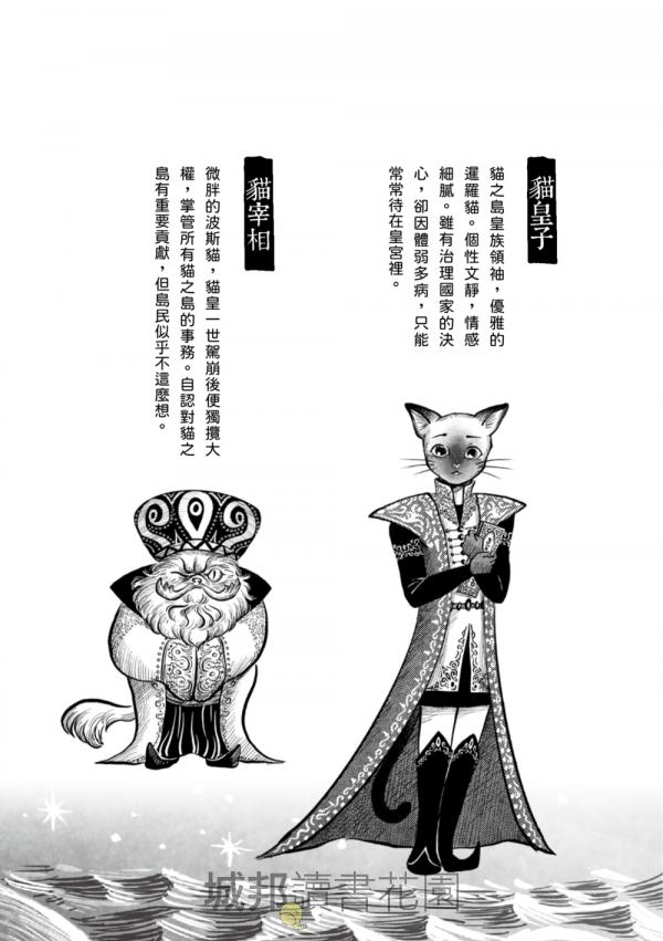 貓之島皇族領袖,優雅的暹羅貓。個性文靜,情感細膩。雖有治理國家的決心,卻因體弱多病,只能常常待在皇宮裡。