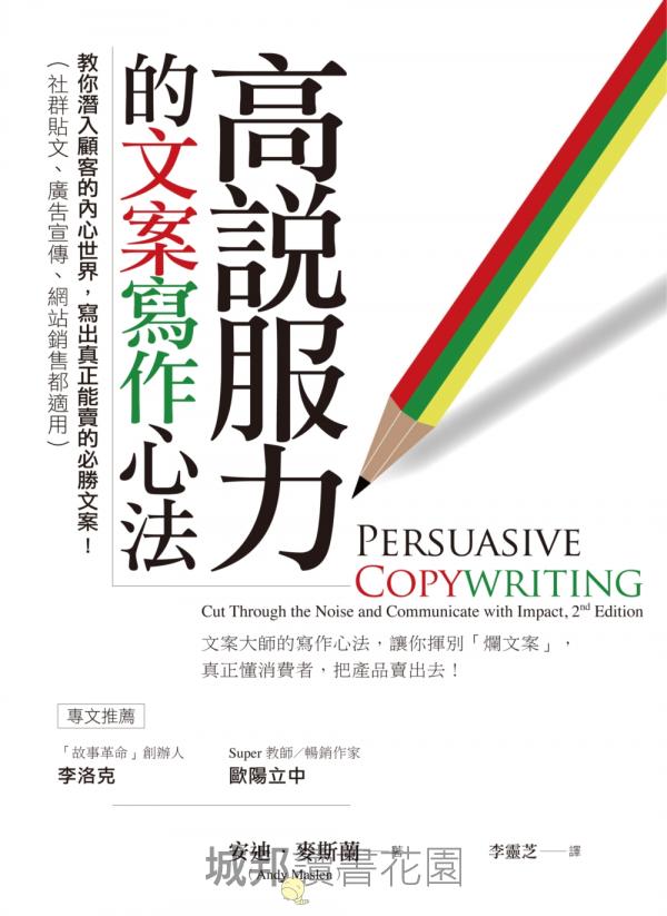 《高說服力的文案寫作心法》展現寫作的魅力,內容從古希臘的寫作理論一直談到fMRI技術,進一步精煉你的文字,好讓你抓住讀者的目光。本書不單探討文案的說服力和銷售力,更能啟發、迷惑和撫慰讀者的心靈。