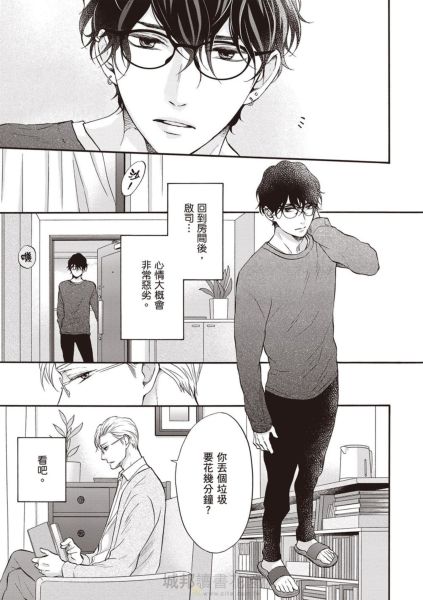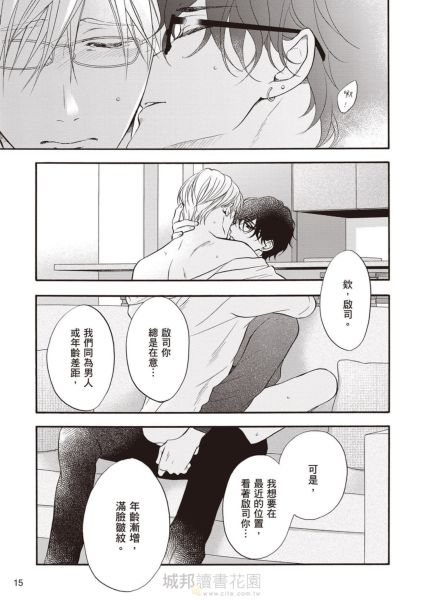 ★S氣質的年下寫手×年長14歲的固執上班族,相差十四歲的微苦情色甜蜜夫夫生活。 ★首刷限定!隨書贈精美典藏書卡!(首刷售完即無贈品) 二十六歲的潤與比他年長十四歲的上班族──啟司一起生活。 容易心生嫉妒的啟司,光是看到潤也和鄰居女性說幾句話,就會心情不悅。 「你就去和女人結婚如何?」 善於應對彆扭伴侶的潤也如此說道。 「……欸,把下面脫掉吧──?」