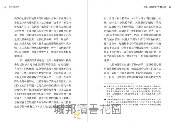 4.策略性與未來導向的思考:撇開技術層面的探討,書中主要提供比特幣的未來金融趨勢、資產配置、風險管理等方面的思考與建議,這對於有意投資加密貨幣的人來說是非常實用。