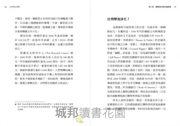 3.整合金融與加密貨幣視角,全方位掌握新時代的貨幣:書中把比特幣放入整體金融體系的結構中來看,而不把它孤立成一個特別的技術,這樣的分析視角能讓讀者更好理解比特幣的潛在影響力、數位貨幣的金融用途,以及未來可能的發展優勢。