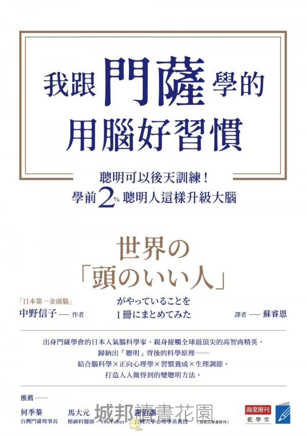 推薦序 聰明,能讓自己與身邊的人活得更自在 何季蓁 自二○一四年開始引進台灣門薩(Mensa Taiwan)以來,當了十一年的「班長」(理事長),常有人問我:「你們這群全世界最聰明的人聚在一起,是不是都在解微積分,或是討論怎麼發射火箭?」 老實說,雖然我們確實有不少厲害的腦袋,但我觀察到的真相往往更「人性化」一點:正因為大腦運轉得太快、雷達太敏銳,很多聰明人反而活得比一般人更累。我們有不少人容易想太多,容易對不完美感到焦慮,甚至在簡單的人際關係裡,因為太講邏輯而撞得滿頭包。 所以,當我翻開中野信子這本《我跟門薩學的用腦好習慣》時,我邊看邊點頭,心想:「這作者不愧是『自己人』(門薩會員),她完全懂我們不少人的痛點。」 這本書不是那種教你怎麼考一百分,或是怎麼變身超級天才的教科書──那種書通常只會增加焦慮。這本書更像是一本寫給大腦的「保養手冊」,教我們這些容易過熱的CPU,該怎麼適時散熱。 書裡最讓我會心一笑的,是關於「刻意示弱」和「學會輸」的藝術。年輕時我們總覺得聰明就是要「贏」,要辯倒對方,要證明自己是對的。但在江湖走跳久了就會發現,邏輯上贏了,往往人就輸了。作者用腦科學告訴我們:真正的頂級智慧,不是像把銳利的刀子到處切;而是像水一樣,能適應各種容器。適時的「裝傻」或「不讀空氣」,有時比逞強更需要智慧。 另外,書中提到的「不辦事項清單」(Not-to-do List),也是我非常推薦的觀念。在這個資訊爆炸的時代,我們已經習慣了拚命做「加法」,卻忘了大腦的頻寬是有限的。學會對雜訊說「不」,學會原諒自己的不完美,甚至學會偶爾「放過自己」,這才是維持長期競爭力的關鍵。 這本書很輕薄,讀起來沒壓力,但我認為它的含金量很高。它不教你如何變得更犀利,而是教你如何變得更「通透」。 無論你的智商是多少,我相信這本書都能幫你把那顆又忙又累的大腦安撫好。畢竟,聰明的最終目的,不應該是為了向世界證明什麼,而是為了讓自己和身邊愛的人,能活得更自在、更快樂一點。 (本文作者為台灣門薩理事長) 推薦序 成為自己版本的聰明人 馬大元 如果是心目中的好書,我習慣找一個充裕的時間,一口氣把它讀完。在享受書本內容的過程中,我也會同時做兩件事情。 一、揣摩作者的心境。因為本書很可能是作者多年的研究與心得,甚至可能是他一生的體悟。我用數個小時的時間,全神貫注進入作者的內心世界,就能領悟他多年的領悟,這是一件多麼高報酬的事情啊! 二、隨時拿這一枝筆,把自己的心得記錄下來。因為主持節目、經營YouTube頻道、寫書、錄製課程,以及每年一百多場的演講......這些活動都需要源源不絕的新素材才能支持下去。所以在這些年中,我養成了一個習慣:就是將不錯的學習內容,立即在腦海中轉化成淺顯易懂、生動有趣,可以順暢傳達給其他人的教案。後來我才知道,這叫作「費曼學習法」(Feynman Technique)。 我過去的經歷中,最廣為人知的就是醫師國考與高考的全國榜首。為什麼能拿到這樣的好成績?天生亞斯特質賦予的專注力與記憶是關鍵,但我也學習了靜坐、快速記憶等技巧,讓腦力得到更進一步的開發。 隨著年齡增長,認知能力有所衰退。但是上面提到的揣摩作者心境與費曼學習法這兩種後天養成的習慣,讓我的學習效率不減反增。 這本書的作者中野信子博士,也是抱持同樣的信念。她認為所謂的「聰明人」,依靠的除了是天賦,更多的是後天發展出來的各項心靈技能。 以下我分享在閱讀本書中自己所做的筆記,也就是我覺得特別有啟發性的觀點,當中也包含自己的發想: 中野信子博士透過多年觀察國內外共事過的「聰明人」,發現聰明其實不單純是智商高,更是因為後天養成、非常多元且因人而異的能力,包含: ‧隱藏實力讓對方贏,建立好人緣與仁厚形象。 ‧化敵為友最好的方法是:真誠地尋求對方的建議。 ‧不媚俗,專心一志做自己。 ‧發展自己專屬的「高難度工作前的熱身儀式」,確保自己快速進入高效狀態。 ‧找出自己真心覺得有趣的事物,並將它有趣地傳達給別人。 ‧如果缺乏老師,就讓書本成為自己的老師。 ‧給自己一個強大的對手,幫助自己不會怠惰。 ‧想要成功,除了該做的事,也該確定不該做的事,例如整晚滑手機。 ‧除了記錄未來該做的事,也要記下已經完成的事,提醒自己已達成的成就。 ‧透過食物可以調理出高效的大腦。 ‧照顧好感官:如安靜的環境、舒適的座椅......創造讓自己高度專注的環境。 ‧每日可執行的小進步,勝過雄心壯志立定的大目標。 在書中還有很多其他有趣又實用的內容,大家可以詳細閱讀、反覆體會與實踐。 最後我用兩句話,總結《我跟門薩學的用腦好習慣》:聰明是多元的,聰明的人是愛學習的,而學習本身是樂趣無窮的。如果你願意享受這樣的樂趣,你也可以成為自己版本的聰明人! (本文作者為精神科醫師、YouTuber) 推薦文 「聰明」的重新定義 謝伯讓 在翻開這本書之前,我其實有一點遲疑。過往這類「讓人變聰明」的書籍,大都在強調更多的努力、更高的自律,以及更嚴密的時間管理,彷彿只要再逼自己一點,人就能變得更聰明。但在開卷之後,我很快發現,中野信子想談的,恰恰不是「再多用力一點」,而是「少做錯誤的事」。 這本書最讓人意外的地方,在於它對「聰明」的重新定義。 聰明並不是「把所
