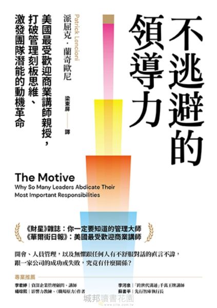 派屈克.蘭奇歐尼 Patrick Lencioni 美國知名管理顧問公司圓桌集團(The Table Group)創始人兼執行長,該公司專門協助各行各業的領導者改善所屬機構的體質。曾被《財星》雜誌譽為:「你一定要知道的管理大師」,更被《華爾街日報》選為美國最受歡迎的商業講師,並被視為美國五大頂尖演講者。 他也是著名的商業暢銷書作家,其作品在全球銷量超過600萬冊,被翻譯成30國語言,並榮登《華爾街日報》《哈佛商業評論》《財星》《彭博商業周刊》及《今日美國》等眾多國際媒體。代表作包括《克服團隊領導的5大障礙》《團隊領導的5大突破》《別再開會開到死》等。 在創辦圓桌集團之前,蘭奇歐尼曾在全球知名的貝恩管理顧問、甲骨文、Sybase等企業任職,負責組織發展中的管理問題。他的理論被廣泛運用在幾乎所有類型的組織,包括跨國公司、創新企業、職業運動團隊、軍隊、非營利組織和大學,服務對象包括西南航空、微軟、紐約人壽、Visa、聯邦快遞及西點軍校等。同時他也是為重症病童圓夢的國際性組織喜願基金會(Make-a-Wish)顧問。 他將自己身為領導者和指導領導者的經驗,化為書中發人深省的寓言故事,藉由具體實例現身說法,重新審視想成為領導者的動機,體認領導的責任與關鍵,並邀請所有領導者,與他一起抵抗「以獎賞為中心」的錯誤領導誘惑。 更多資訊請參考:www.tablegroup.com.