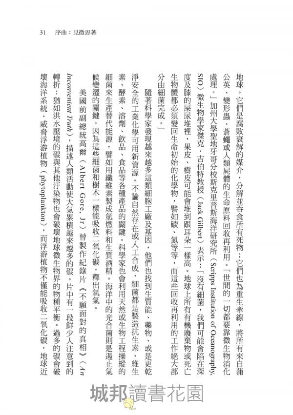 這本書既是引人入勝的科學探索紀實,也替微生物討回了它們應有的地位:它們不僅是人類演化歷程的隱形夥伴,更可能是替代能源、氣候變遷、糧食危機與醫療突破等重大難題的下一個關鍵解方。