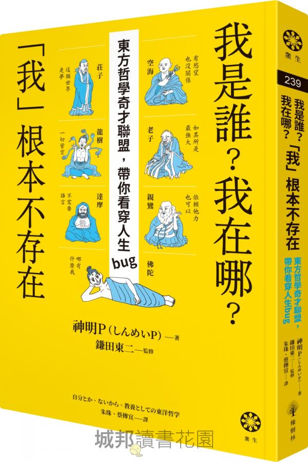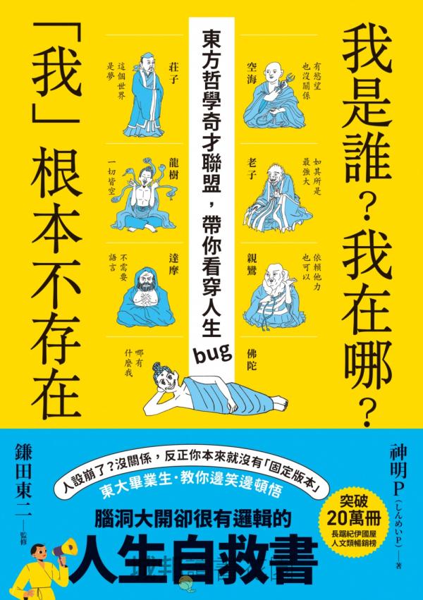 作者 神明 P (しんめいP) 出生於大阪府,畢業於東京大學法學部。曾就職於某知名IT企業,並因海外業務往來各國,但由於工作能力不足,悄悄辭職。隨後搬到鹿兒島縣的一座島嶼從事教育工作,同樣因為無法勝任而離職。抱著一舉翻身的心態,參加日本R-1單人藝人大賽,但在第一輪即遭淘汰,隨後宣布引退。成為無職。躺平在被窩裡的某日,偶然接觸到東方哲學,深受震撼。將當時的心情寫成了網文,以及〈讀完五十本東方哲學書後,發現根本無所謂什麼「真正的我」〉這篇文章引發了話題,意外地得以出書,並走到了現在。 監修 鎌田東二 京都大學名譽教授。曾任武藏丘短期大學助理教授、京都藝術大學教授、京都大學心的未來研究中心教授、上智大學大學院實踐宗教學研究科與哀傷輔導研究所特任教授,現任 NPO 法人東京自由大學名譽理事長、天理大學客座教授。專業涵蓋宗教哲學、比較文明學、民俗學、日本思想史、人體科學等領域,跨越多學科領域,並從全新的觀點持續進行多樣的研究。著作包括《言霊的思想》(青土社)、《悲嘆與關懷的神話論:須佐之男與大國主》(春秋社)等多部著作。注意事項
