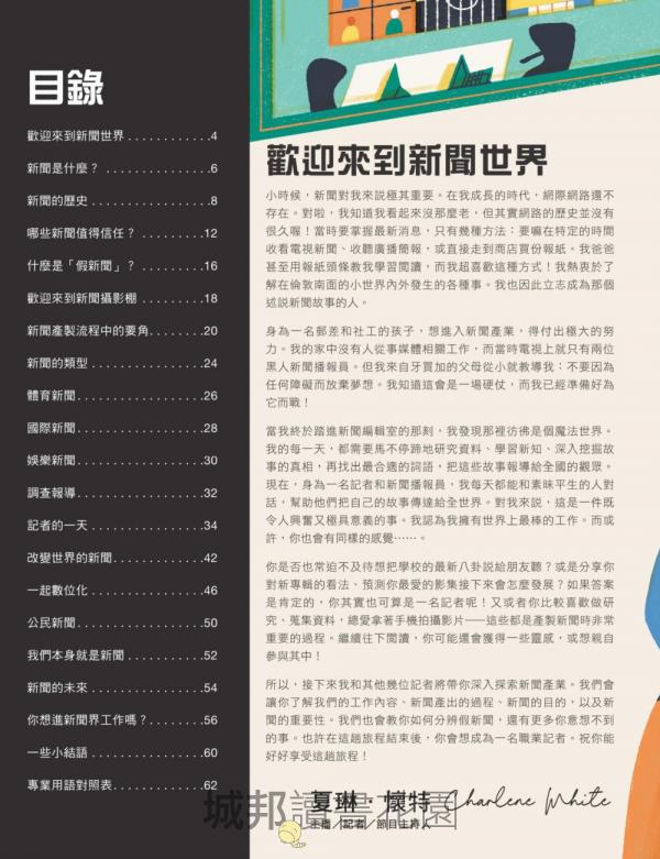 「這本書對任何對新聞懷有興趣的年輕人都極具價值。書中的媒體素養單元深具吸引力,使本書成為一項極佳的教學資源,幫助青少年培養成為具批判思考力的公民。」