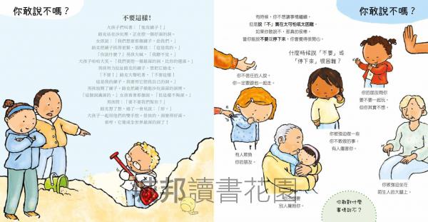 ◆除了學習說不,聽見別人說不一樣重要! →有時候,你真的很想做某些事,但你的朋友不想。雖然很難停下來,還是必須做到。當別人說不要或請你停下來時,一定要尊重對方的意願。