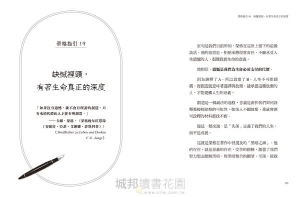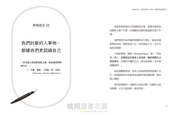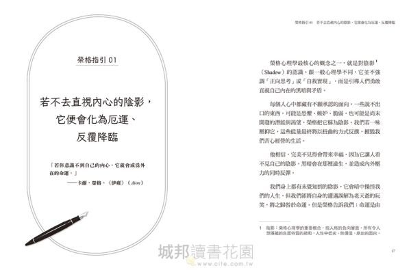 然而,隨著臺灣人對心理學愛好程度的逐年增加,也隨著我們對人類心靈療癒的深度渴求不斷湧現,越來越多讀者向我反應,他們需要一本更通俗、好讀的作品:既不將榮格的思想太過簡化,也不過分嚴肅,使人望而生畏。