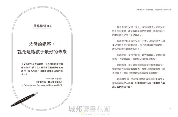 我們對自己瞭解得越深,越有機會修正不良的反應,中止它的世代循環。育兒是人獲得成長的絕佳時機,所以孩子既是試煉,也是禮物。