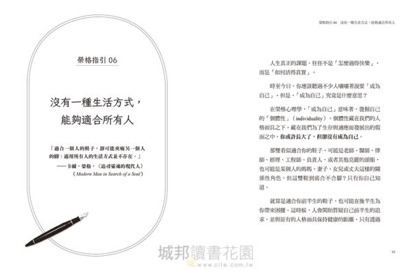 書中的28則金句,都是從榮格著作中摘錄得出,並透過白話的語言解釋、根據主題分為四個不同的篇章。閱讀時,你不需要遵從嚴謹的先後順序,請直接從當下喜歡、感興趣的句子開始,從中找到你需要的力量!