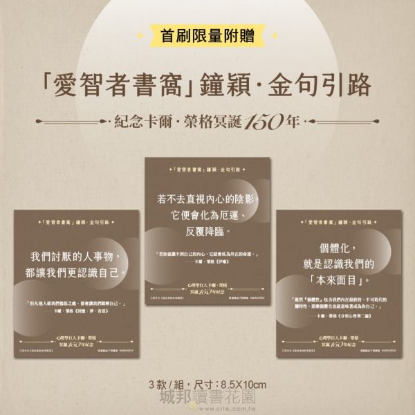 首刷版限量加贈【邁向完整的你書卡組】,讓榮格金句陪伴你,找回身心的安頓與完整!