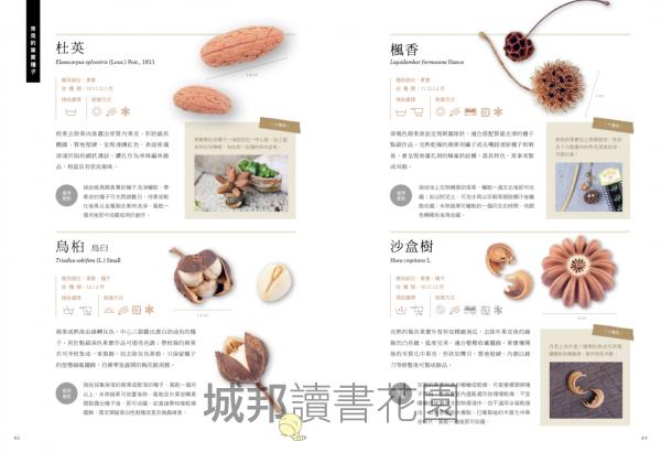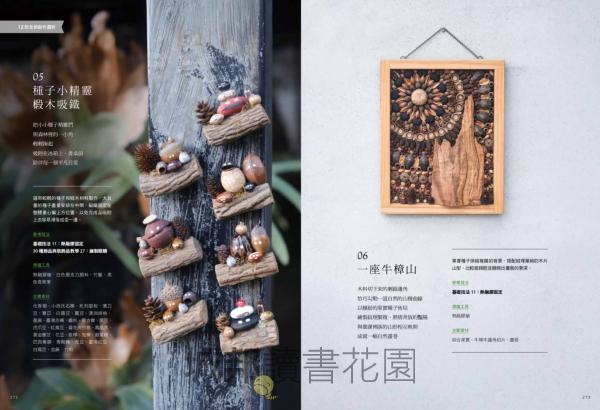 ◆ 30 款經典原創+12 款全新創作──從簡約日常飾品到立體裝置的詳細教學,展現果實種子的創作廣度與應用潛力。
