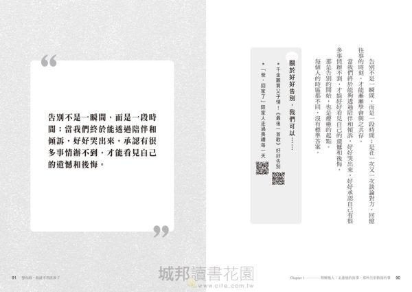 當告別時刻來臨,靜靜等悲傷走過。某一天,你會發現,想念時流下的淚也能帶著笑容,而遺憾,終於慢慢放下了。