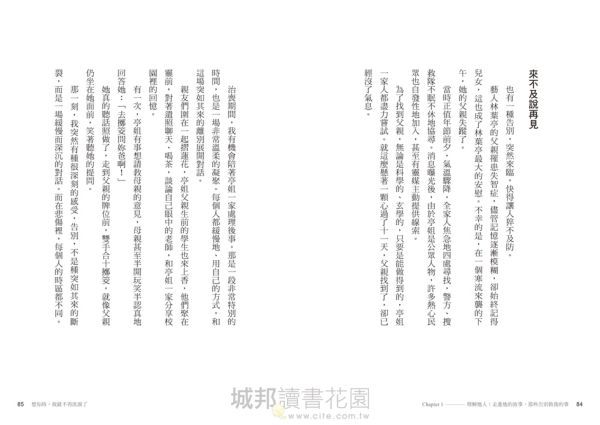 只是目睹,也會受傷/為什麼我沒有媽媽?/冬瓜在哪?給恁爸死出來!/她帶走的是我心裡的家/以後的事以後再想……嗎?/人都走了,難道還能跟老天爺搶人?/我很愛她,但我來不及