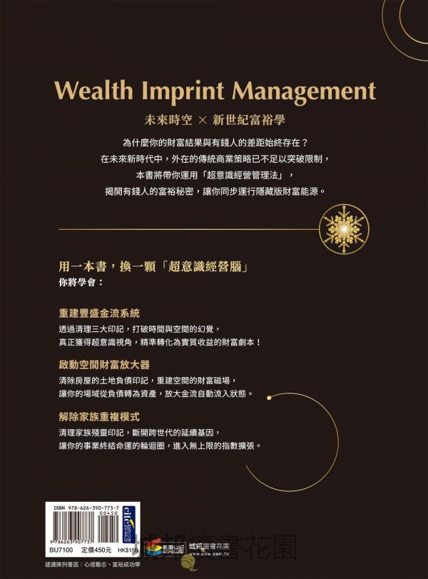 為什麼我們會金錢匱乏? 要達到真正的富裕,你不能只看「財富」。 暢銷書《有錢人不一樣的財富印記》續作, 揭開有錢人的富裕祕密, 帶你走入富裕核心,讓金流頻率升至富豪等級。   你是否盼望著財富自由,卻始終看不到那一天的到來?   投資失敗、長期負債──種種財富問題,讓你感到壓力無比?   許多人窮盡一生追逐金錢,以為答案就在外面,卻不曉得真正的關鍵,在於靈魂的「印記」。 ►想要成為有錢人,就從「清理印記」開始   印記是我們累世思想、情感與行為的累積痕跡,深深刻在靈魂檔案中,默默主導著你的選擇與現實。其中「三大核心印記」──負債印記、賀爾蒙印記、祖先印記──是鎖住你財富自由的關鍵。   不只如此,每一個空間、每一片土地,也都承載著過往事件留下的能量記憶。當土地存在低頻的印記能量,居住其中的人,往往會被一層無形的匱乏結界包圍,行為模式與財富流動同步受限。   清理印記,代表著將生命運作模式,從舊有的線性邏輯,切換至高次元的運作架構。    ►走上富裕的神性軌跡,讓豐盛開始流動!   過去,我們追求財富,是基於競爭與掠奪;如今,高次元金錢時代的致富法則,則是植根於宇宙的流動與愛。金錢本是一種中性的創造工具,其顯化結果完全取決於你與它的關係。   書中提出多項關鍵法則,可以幫助我們順應宇宙的豐盛流動,例如:   ●共享的神經濟:帶著喜悅和感恩之心去共享自己的財富能源,會加速金錢能量的波動。   ●財富的因果法則:宇宙中的富裕沒有所謂的「巧合」,任何事件都遵循著財富的因果定律。理解這個法則,就能放下對匱乏的執著,將匱乏視為通往富裕的提醒與機會。   ●財富的循環法則:宇宙財富都只是循環的一部分,沒有所謂真正的獨占或是壟斷。真正的富裕大師不會執著於眼前的財富,而是有意識讓財富自由地循環兩端之間。 ►一套超越金錢的全方位富裕藍圖   本書不僅是一本談論「財富」的書,更談論了生命的全方位蛻變──   在事業層面,你將學會超意識經營管理,清理土地、建築及祖先印記,破解無形的財富限制;在關係層面,看穿賀爾蒙印記帶來的「愛情幻象」,釋放與父母關係的投射,重新學會無條件的真愛;在健康層面,理解疾病背後的靈魂訊息,選擇高頻食物,啟動身體自癒力,實現身心靈的平衡。   書中穿插多個案例,呈現印記如何影響人生選擇、關係變化與事業發展,也揭示清理後所帶來的轉變──有人藉由清理印記,擺脫家族期望的窠臼,最終將事業與個人天賦結合;也有人透過釋放空間中的「殘靈印記」,讓瀕臨破碎的家庭重獲和平。   此外,搭配本書所提供的清理方法,例如「七維光塔淨化系統」、「腦部印記清除法」或「七色羽毛清理法」等,將協助你從源頭徹底改寫生命設定,擺脫舊有印記與原生枷鎖,讓金錢、人脈、機會自動向你靠攏。   ★☆★   如今,我們正處於一個關鍵的轉捩點——   一個從舊有物質主義財富觀,邁向「高次元富裕時代」的偉大新紀元。在這個階段,真正的富裕,體現在內在狀態的穩定與清明。   透過清理印記,每個人都能重新啟動屬於自己的富裕劇本,讓人生開始朝向更寬廣的可能性流動。 ►閱讀本書,你將能夠: 清理負面印記,喚醒內在財富藍圖:本書提供核心方法,協助你清理潛藏於集體意識中的「恐懼印記」與「負面印記」,喚醒個人獨特的「靈魂印記程式」與「財富編碼」。 啟動「財富引擎」與全新循環:透過清理負面印記,可啟動一個全新的「財富引擎」運轉系統,突破過去限制,創造與持續放大富裕循環,將現實轉換到一個豐盛的實相。 獲得全方位的富裕與豐盛:不只變得有錢,而是同時擁有力量、健康、成功與深度連結的愛,達成最完整、最真實的富裕。 改善個人生命各面向:啟動財富頻率,同時開啟靈魂自我康復與自我提升的能力,帶來更健康的身體、更穩定成功的事業、以及更和諧豐盛的關係。 轉換視角與人生劇本:改變看待事物的視角,將原本的困境視為靈魂成長的契機,並能夠「移動」原本被設定好的命運軌跡,創造正向的生命篇章 。 邁向高次元富裕時代:當你解開財富印記、跳脫貧窮意識、擴張意識並清除不良負債後,就能追求更高層次的富裕,並啟動全新的財富軌跡。