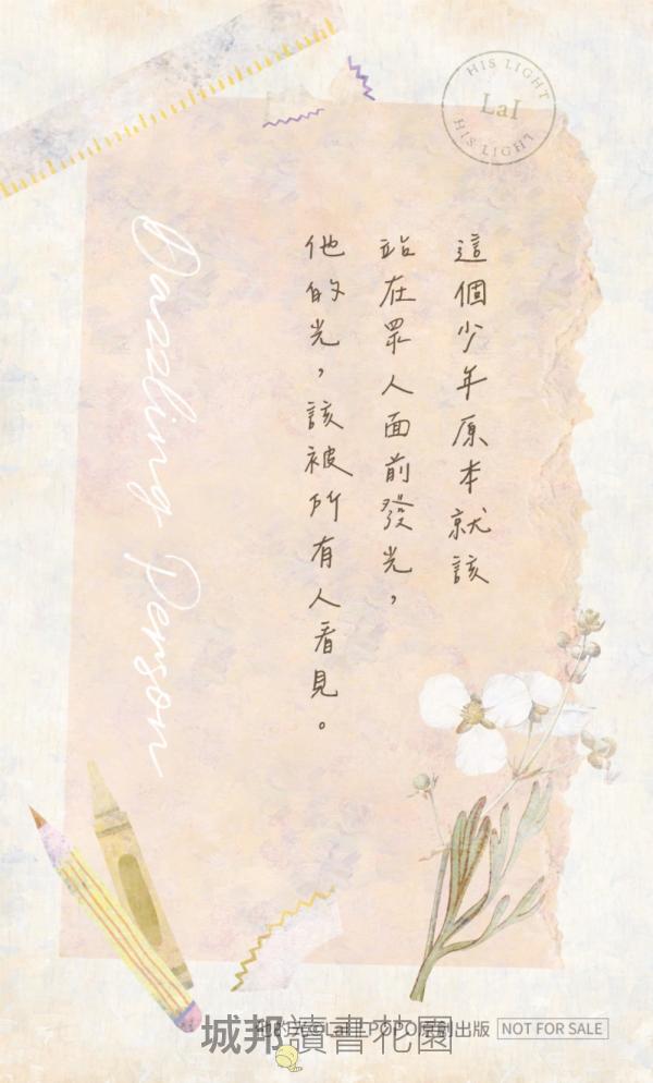 相信世界上所有美好的事,任性隨和、偶爾強迫症,大懶人主義,喜歡野原一家。 著有:《前男友》、《淺青色時光》、《討厭喜歡你》、《悸風之夏》、《煦煦月光》、《釀春光》、《酸糖》、《妳別長大》。 IG:slowlyyylai FB:LaI POPO專頁:https://www.popo.tw/users/CrayonLaI三杏子