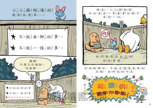 《小小探險隊》非常適合用來促進共讀或課堂上的延伸學習。故事設計充滿戲劇張力與趣味,既能吸引閱讀初階的孩子自主閱讀,也利於在共讀過程引導孩子發表想法、分享經驗……本書看似幽默、輕鬆,卻誠摯動人;看似幻想,卻貼近真實。它鼓勵孩子們勇於想像、敢於行動,也能在遊戲中體會責任與情感的意義。──葉嘉青|臺師大講師暨天鈺環境永續基金會顧問總監
