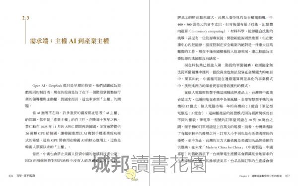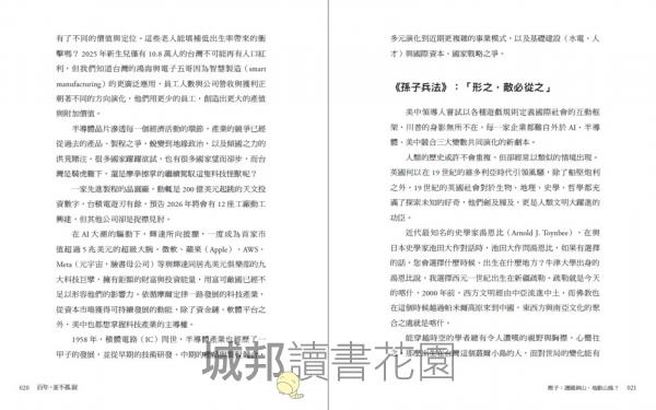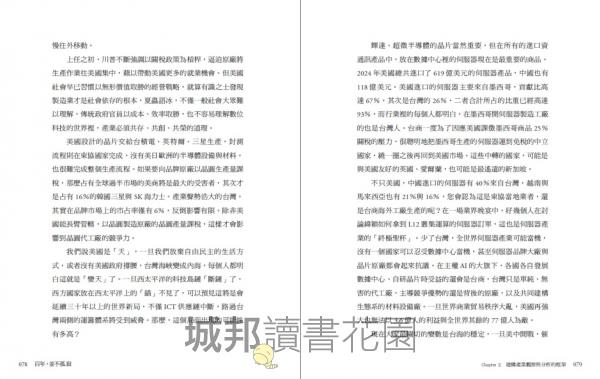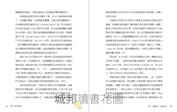 2|第一手產業深度觀察,揭開半導體與 AI 全球競局: 作者透過多年在國際舞台的演講、論壇與產業合作,包括與輝達、英特爾、三星、ASML、蔡司等領袖的對話,不僅總結出技術趨勢,更呈現全球科技巨擘如何重塑供應鏈、美中歐韓日等國在半導體與 AI 上的真實盤算……這些洞察多為作者親身所見,有別於一般媒體報導。