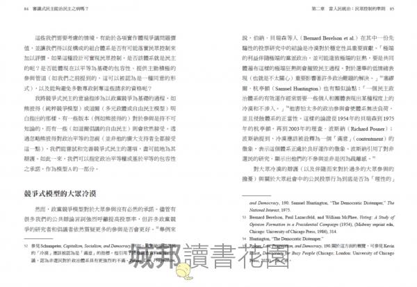 太棒了、富有價值、具啟發性,並使人鼓舞。對民主理論與民主實踐具有宏大貢獻。