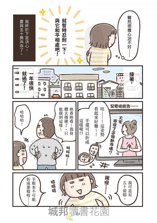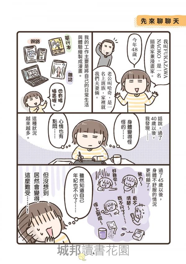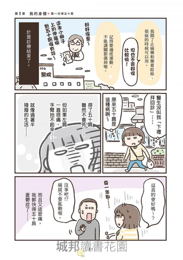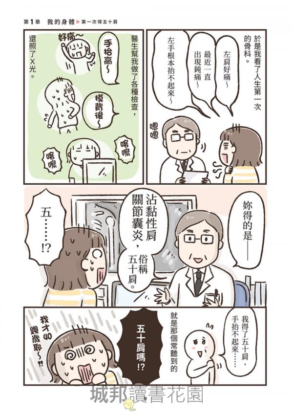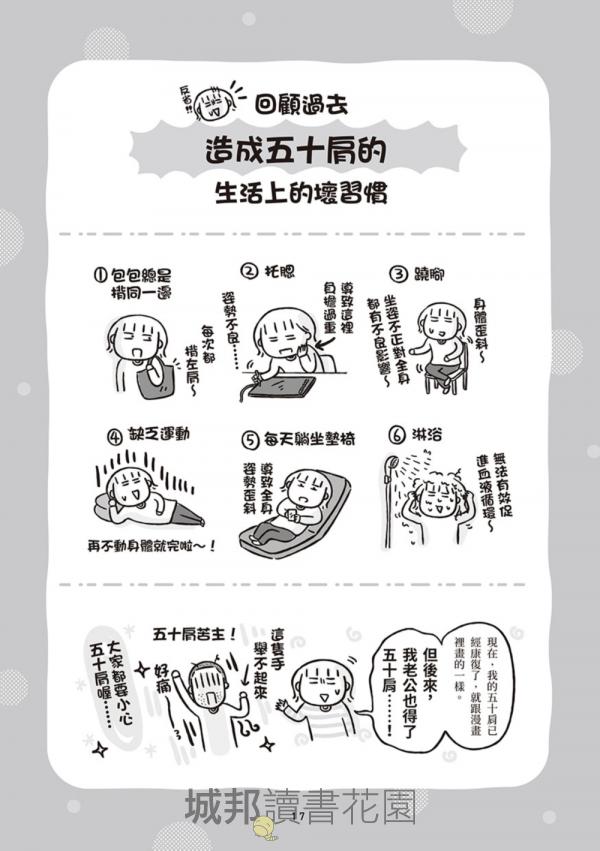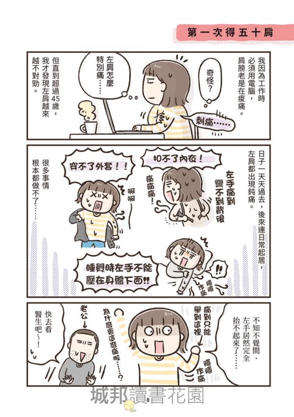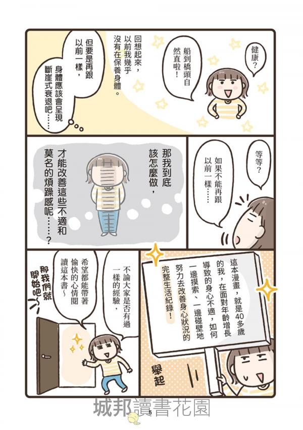 作者透過充滿崩潰卻令人會心一笑的漫畫,把那些說不出口的中年危機,化為一幕幕笑中帶淚的日常小劇場;同時搭配醫師解說與簡單可行的生活建議,讓讀者明白:這是一場長期作戰,但你並不是孤軍奮戰!