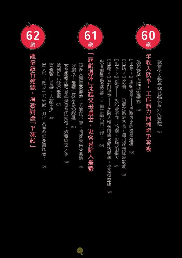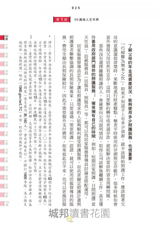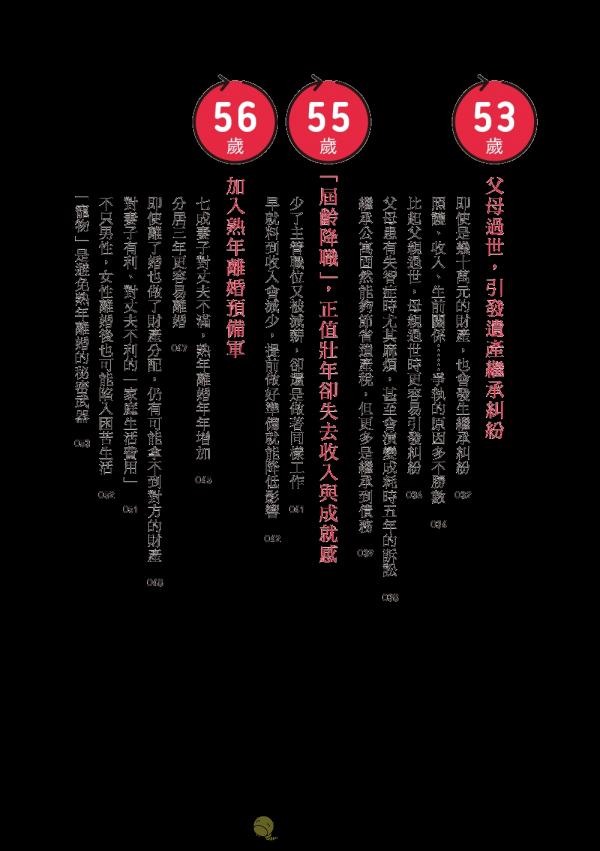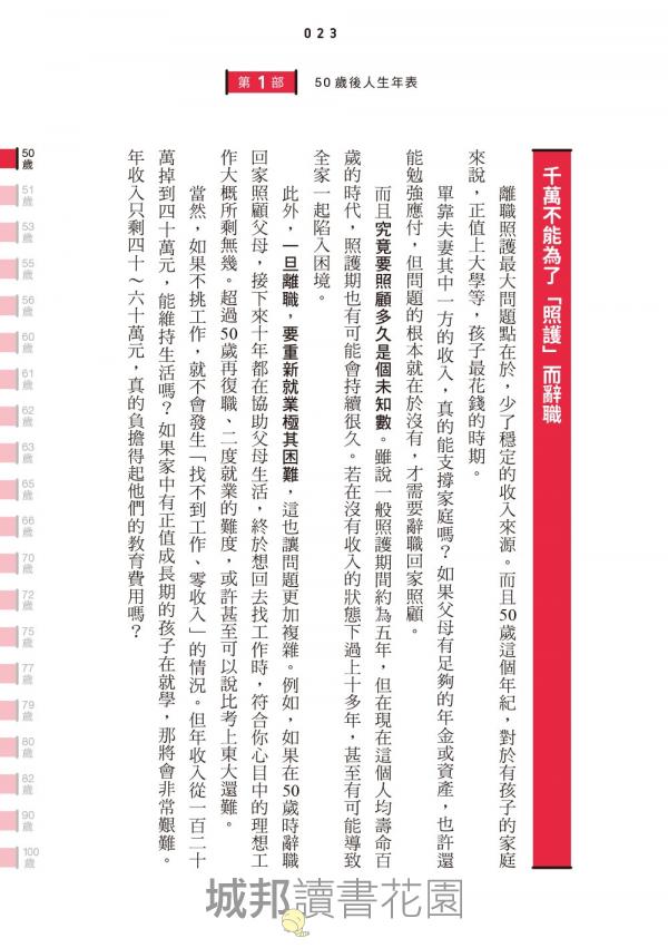 本書從「人生年表」的角度出發,具體解析 50 歲以後各人生階段可能遭遇的問題。