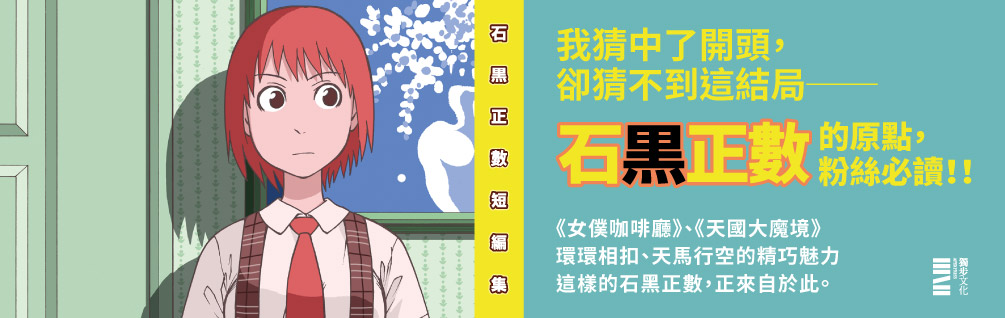 | 第一次讀完石黑正數這次短篇集的一校稿時,開始醞釀文案的第一個念頭就是那句「我猜中了開頭,卻猜不中這結局。」最後怎麼會是這樣,好想知道他在想什麼!?石黑正數對台灣讀者而言,可能長期是知道的人就知道,然後要到去年《天外大魔境》的動畫化之後才算有了比較全面的知名度。身為石黑作品長期的愛好者,在獨步決定出版漫畫後,就立刻將他的作品放入書單,終於在今年底出版了!這次的短篇集收錄了石黑在2002-2009年期間發表於各大漫畫雜誌……(繼續閱讀) |