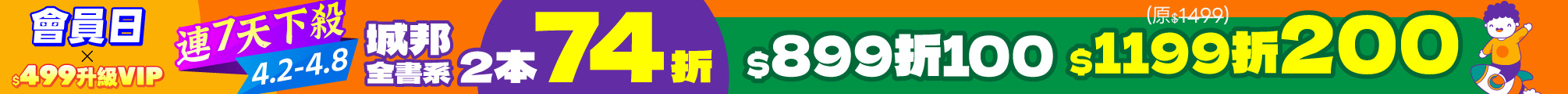 城邦任選2本74折,滿$899折100、$1199折200,輕鬆擁有閱讀好時光!