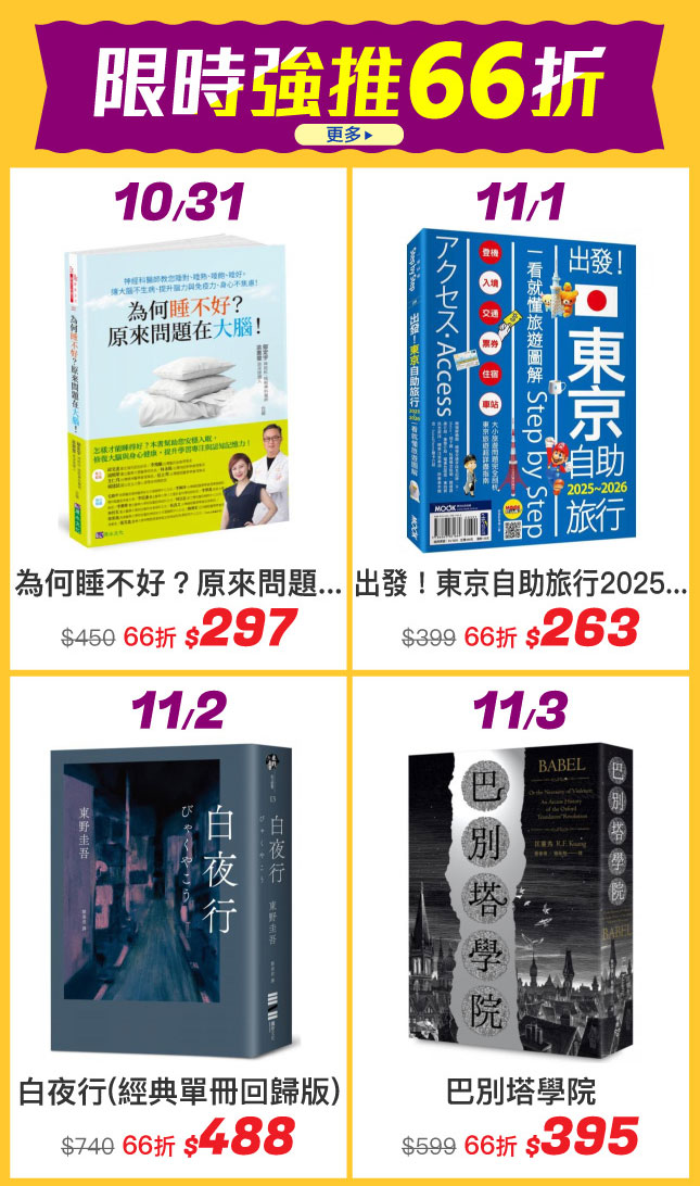 天天強推66折:白夜行、巴別塔學院……再享滿額折扣,真的太划算了!